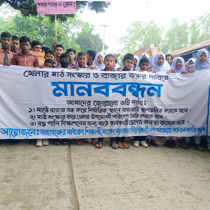 খেলার মাঠ সংস্কার ও বাজার বন্ধের দাবিতে মানববন্ধন