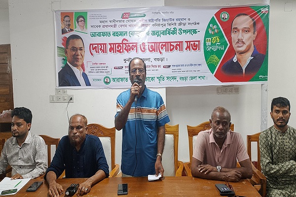 বগুড়ার ধুনট উপজেলায় আরাফাত রহমান কোকো স্মৃতি সংসদ এর উদ্যোগে সাবেক শহীদ রাষ্ট্রপতি জিয়াউর রহমান ও সাবেক প্রধানমন্ত্রী দেশনেত্রী বেগম খালেদার কনিষ্ঠ পুত্র বিশিষ্ট ক্রীড়া সংগঠক মরহুম আরাফাতের রহমান কোকোর ৫৬তম জন্মবার্ষিকী পালন করা হয়েছে। এ উপলক্ষে মঙ্গলবার (১২ আগস্ট) বিকেল উপজেলা মডেল মসজিদ হলরুমে তার আত্মার মাগফেরাত কামনায় দোয়া মাহফিল অনুষ্ঠিত হয়।