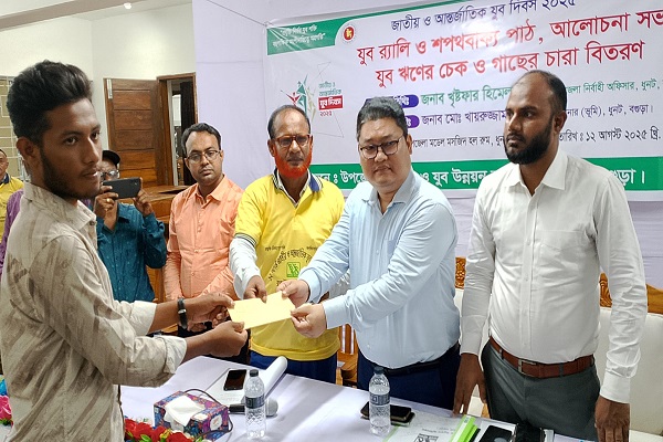 বগুড়ার ধুনট উপজেলা প্রশাসন ও যুব উন্নয়ন অধিদপ্তর আয়োজিত জাতীয় ও আন্তর্জাতিক যুব দিবস যথাযোগ্য মর্যাদায় উদযাপন উপলক্ষে যুব মিছিল, শপথ বাক্য আলোচনা সভা, ঋণের চেক ও গাছের চারা বিতরণ সহ বিভিন্ন কর্মসূচির মধ্য দিয়ে অনুষ্ঠানটি অনুষ্ঠিত হয়েছে। মঙ্গলবার (১২ আগস্ট) দুপুরে উপজেলা মডেল মসজিদ হল রুমে।
