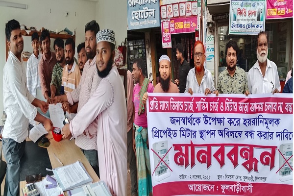 ফুলবাড়ীতে প্রিপেইড মিটার স্থাপন বন্ধের দাবীতে মানববন্ধন