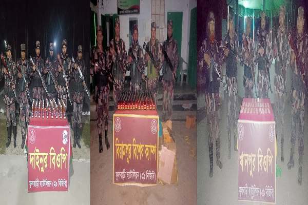 যাহার মূল্য ৯৯ হাজার ৬ শত টাকা। গত ১৮ ডিসেম্বর বিরামপুর বিশেষ ক্যাম্প অভিযান চালিয়ে ২৮৮ বোতল সিরাপ ও ১৯ ডিসেম্বর বড়গ্রাম বিওপি, খানপুর বিওপি ও দাইনুর বিওপি পৃথক পৃথক অভিযান চালিয়ে ৯১ বোতল বিদেশী মদ, ১৯৯০ পিস ভারতীয় নেশা জাতীয় ট্যাবলেট আটক করে, যাহার মূল্য ৩ লক্ষ ৩৮ হাজার ৯ শত টাকা।